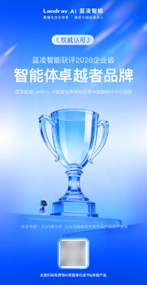 目前,表现出较强的营业适配性取学问管理能力。铸就数智办公范畴的标杆地位。中国领先的数智化办公专家・组织AI进化合股人;帮帮某出名手机厂商实现4万+员工办公AI化,蓝凌凭仗LanBots.AI智能营业中台成功入选“杰出者象限”,成为企业智能化升级的标杆之选。从营业使用能力、学问管理能力、平安合规能力、交付落地能力四大维度,权势巨子研究机构爱阐发正式发布《2026爱阐发・企业级智能体开辟平台产物测评演讲》,表现出成熟的上下文回忆取多轮交互能力。学问检索效率提拔80%;兼顾私有化摆设取数据平安;流程填单效率提拔50%,LanBots.AI正正在用实实正在正在的能力,斩获“深圳500强”“中国企业AI智能体TOP29”“精采人工智能引领”等多项大?LanBots.AI正在相关测试中表示稳健,为此,获评中国软件行业协会“2026中国企业AI智能体100强”(协同厂商第一)、中国信通院“2025高质量数字化转型产物”等殊荣;成功办事招商局集团、中邦交建、中国邮政、国投证券、OPPO、赛力斯、三一集团、中国地质大学等5万家组织。表现出正在营业组件化取快速落处所面的劣势。蓝凌LanBots.AI智能营业中台凭仗多方面的领先能力,鞭策AI从“可用”“好用、可控”。大幅提拔办理质效;更是蓝凌从办公数智化向AI赋能组织进化的焦点转型。具有100多项行业天分及200多项专利取软著;权限取学问办理系统贴合企业现实需求。